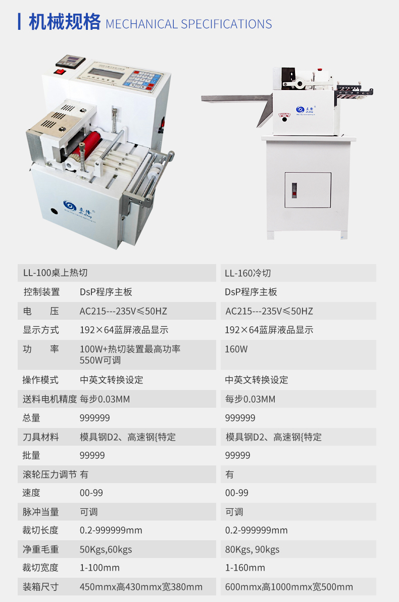 LL-100桌上全數(shù)字智能切斷機(jī)(熱切型)/(冷切型) 產(chǎn)品說明: 本機(jī)采用全數(shù)字智能控制裝置,按鍵操作,同時(shí)可任意設(shè)定切斷長度/數(shù)量、送料速度、且裁切精度準(zhǔn)確、耗損少、機(jī)型設(shè)計(jì)符合人體工學(xué)原理操作簡單,廣泛適用于織帶、拉鏈、...